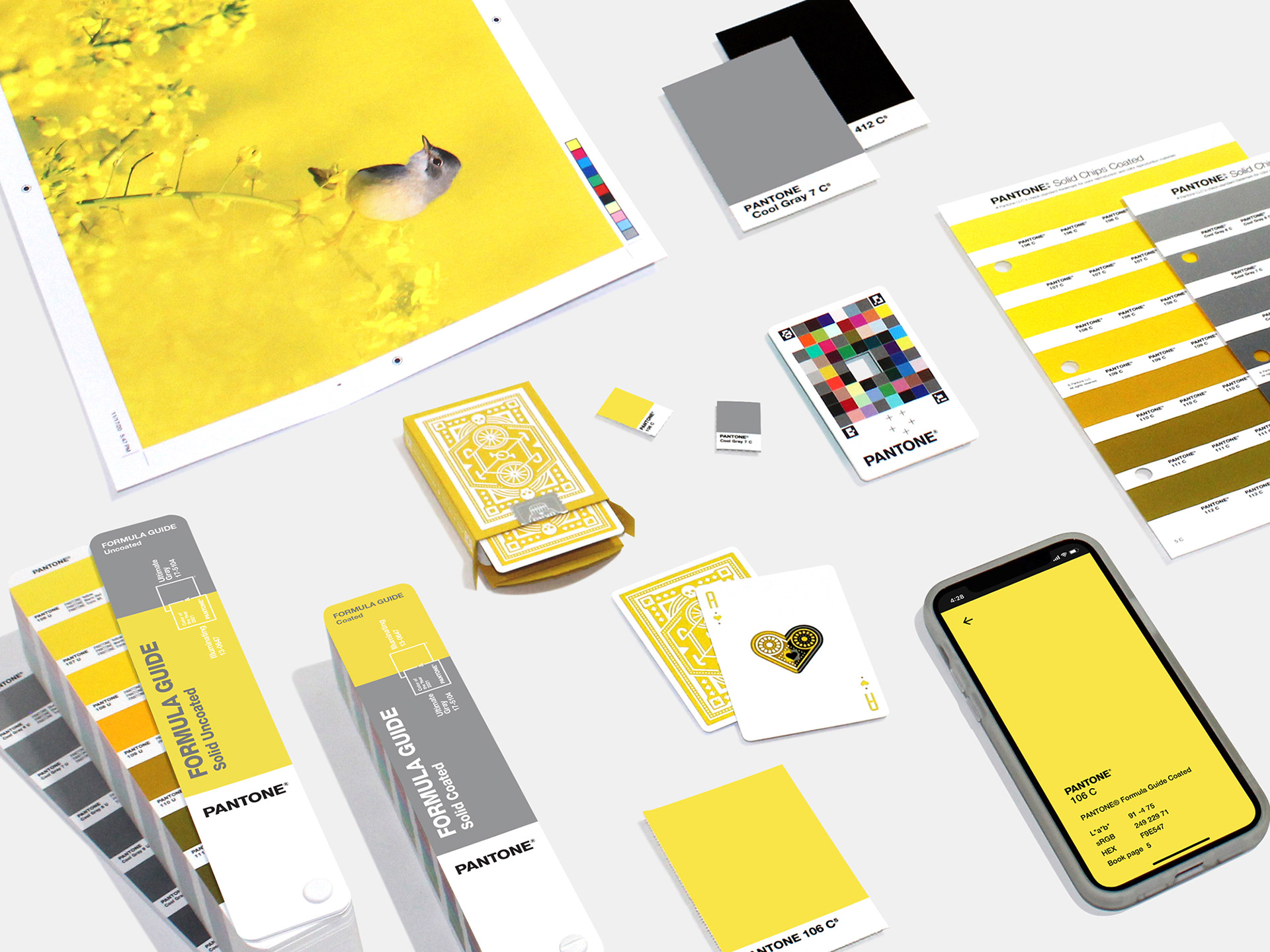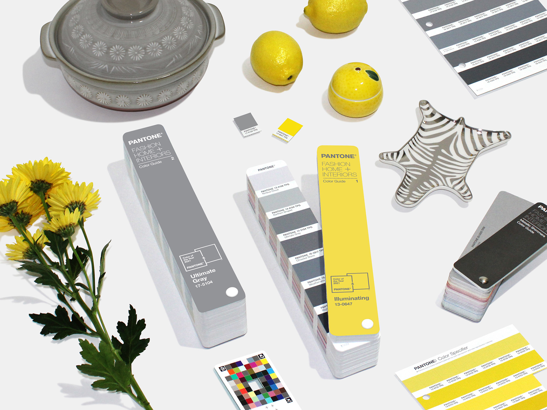 Flat lay photography representing how to use the Colors of the Year 2021 across different design industries.